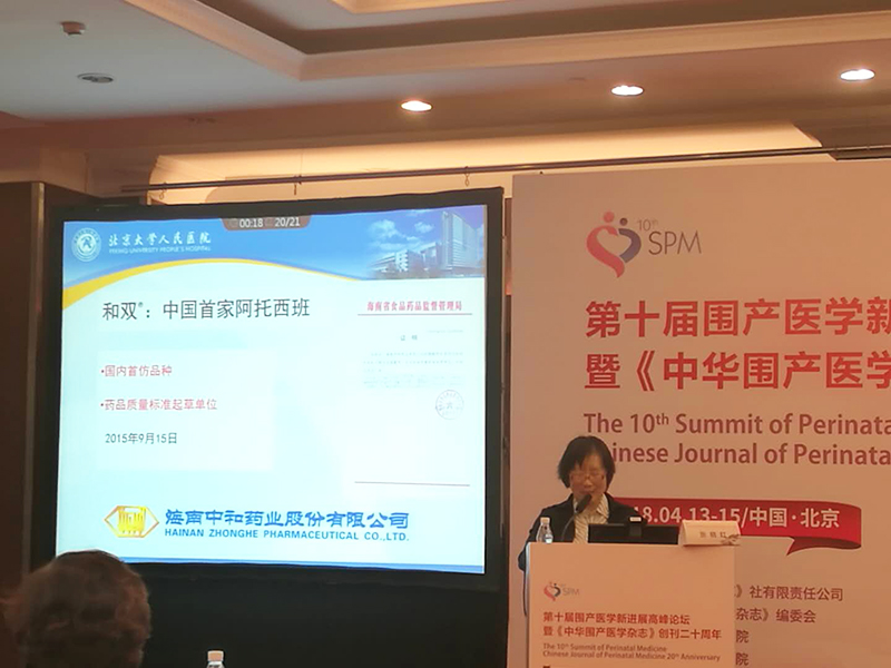 海南中和藥業(yè)股份有限公司攜重磅產(chǎn)品“和雙?醋酸阿托西班注射液”亮相本次會(huì)議,獲得全國(guó)圍產(chǎn)醫(yī)生的廣泛關(guān)注。并特邀北京大學(xué)第一醫(yī)院時(shí)春艷教授主持,由北京大學(xué)人民醫(yī)院張曉紅教授主講專題講座《早產(chǎn)的宮縮抑制劑臨床應(yīng)用》。張教授先從早產(chǎn)的流行病學(xué)開(kāi)始切入主題,WHO指南及中國(guó)的早產(chǎn)指南2014版列入的宮縮抑制劑主要有:①選擇性宮縮抑制劑:和雙?阿托西班;②β2腎上腺素受體興奮劑:利托君;③鈣通道阻滯劑:硝苯地平;④前列腺素合成酶抑制劑 :吲哚美辛;硫酸鎂只作為32周前的神經(jīng)保護(hù)劑使用。張教授認(rèn)為在維持/重復(fù)應(yīng)用宮縮抑制劑中,和雙?醋酸阿托西班注射液對(duì)改善結(jié)局有顯著性差異。利托君/硝苯地平與安慰劑組對(duì)比,無(wú)顯著性差異。和雙?醋酸阿托西班注射液安全性好,應(yīng)為宮縮抑制劑的最佳選擇。