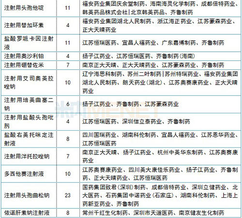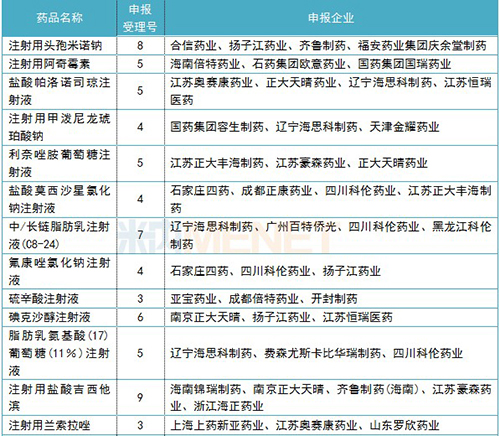 正在審評(píng)的注射劑一致性評(píng)價(jià)補(bǔ)充申請(qǐng)情況(3家及以上)