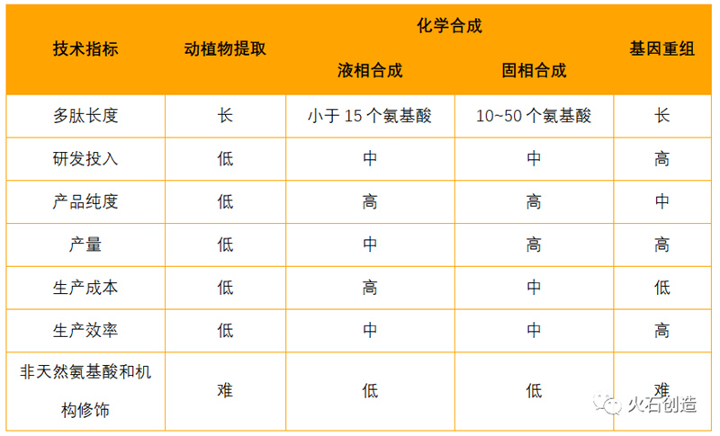 2.化學(xué)合成方法主要有固相合成與液相合成兩種,生產(chǎn)工藝復(fù)雜、步驟繁多,生產(chǎn)一個多肽分子有時超過百步工藝,大大增加了生產(chǎn)難度和生產(chǎn)成本。