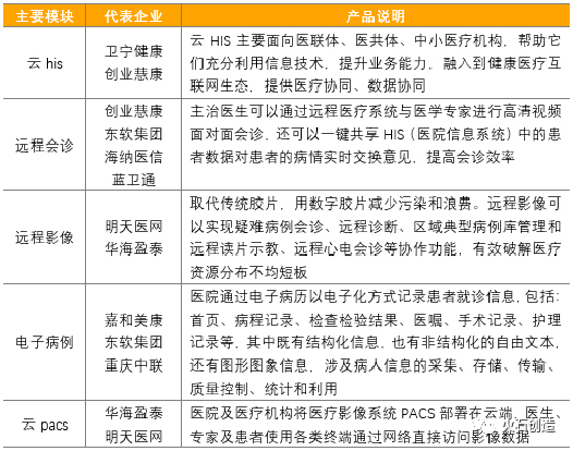 表1 醫(yī)療信息化主要模塊代表企業(yè)(來源:根據(jù)公開資料整理)