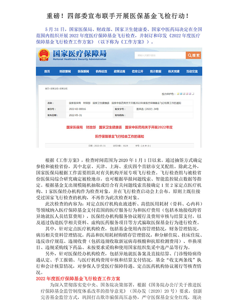 重磅!四部委宣布聯手開展醫(yī)保基金飛檢行動!